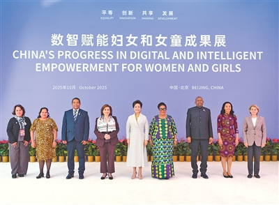 十月十四日上午,全球婦女峰會配套活動“數智賦能婦女和女童成果展”在北京開幕,國家主席習近平夫人、聯合國教科文組織促進女童和婦女教育特使彭麗媛同聯合國副秘書長兼婦女署執行主任巴胡斯共同出席并致辭,有關外國領導人配偶、婦女組織負責人、友好人士代表等參加。