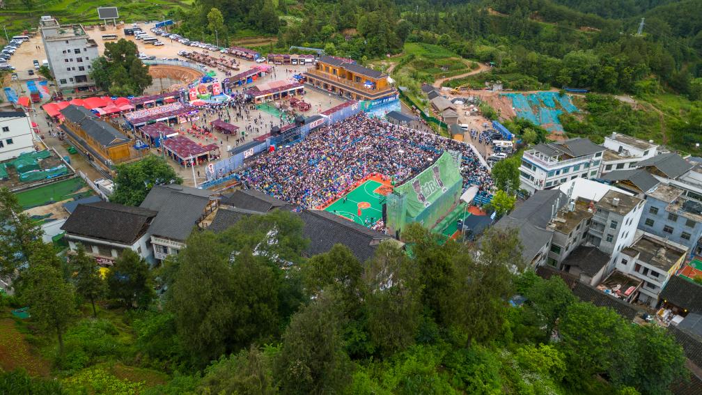 今年7月20日,一年一度的臺盤村“六月六”吃新節籃球賽在臺盤村“村BA”球場完賽。賽事設置了公開組、村村組、中年組、少年組和女子組等組別,來自全國各地的195支球隊,在10天的賽期內,給當地群眾和游客帶來了數百場精彩比賽。