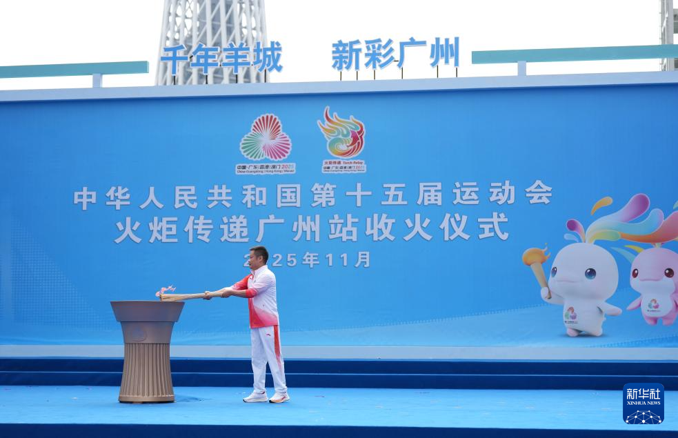 這是11月2日拍攝的第十五屆全運會火炬傳遞廣州站收火儀式現場。