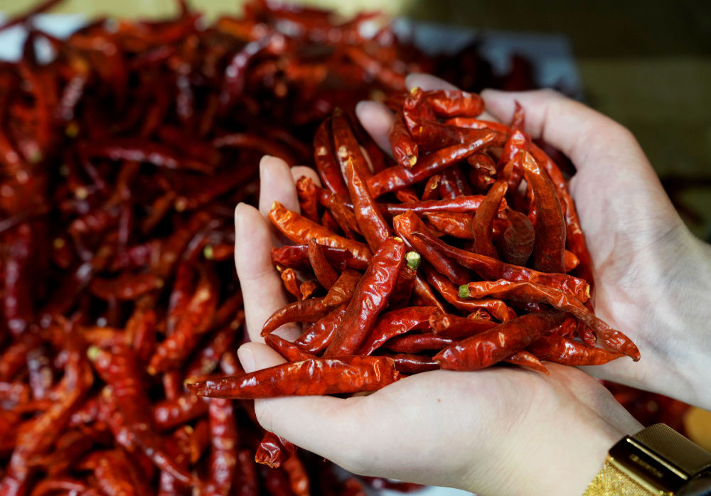 這是2022年11月7日在第五屆進博會食品及農產品展區拍攝的來自盧旺達的辣椒。新華社記者 劉穎 攝