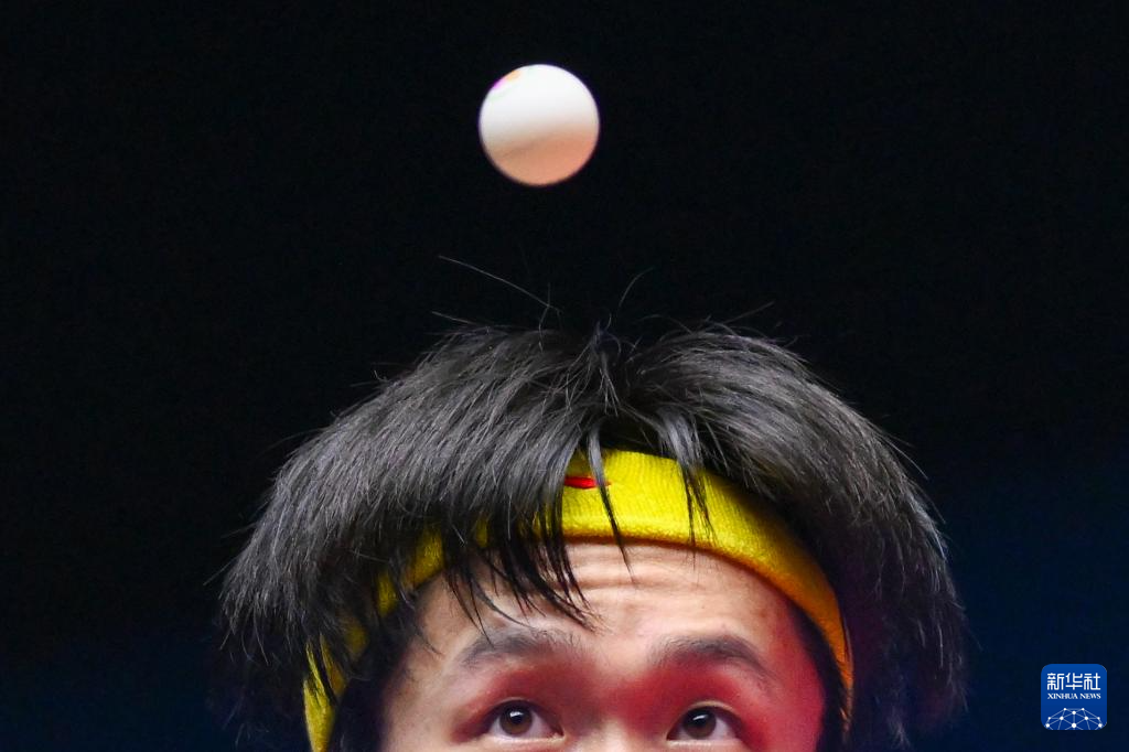11月10日,王楚欽在比賽中發球。