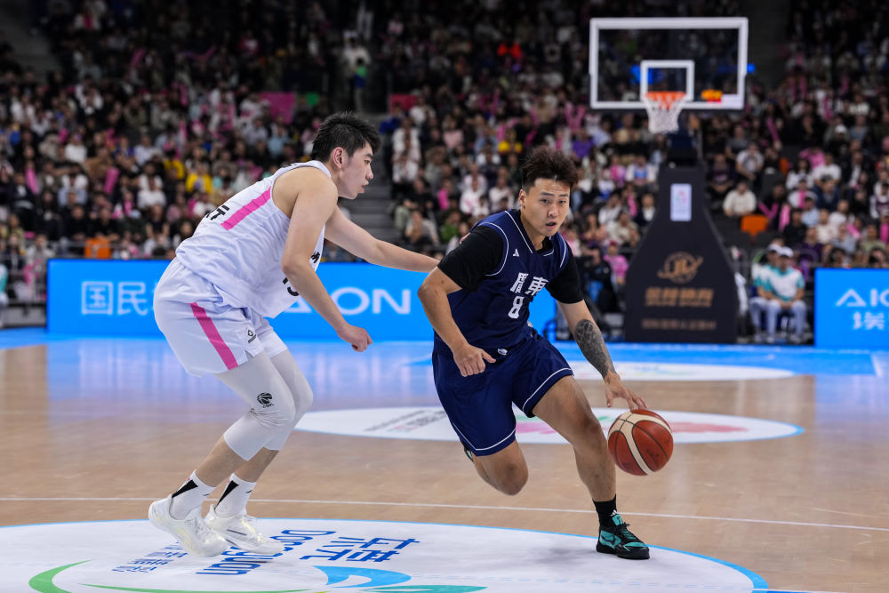 11月12日,廣東隊球員趙睿(右)在比賽中突破。新華社記者 李博 攝