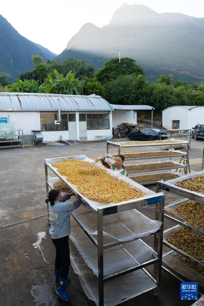 近期,云南省保山市迎來咖啡收獲季,當地咖農趁晴好天氣采摘、加工咖啡果,咖啡園中一派繁忙景象。