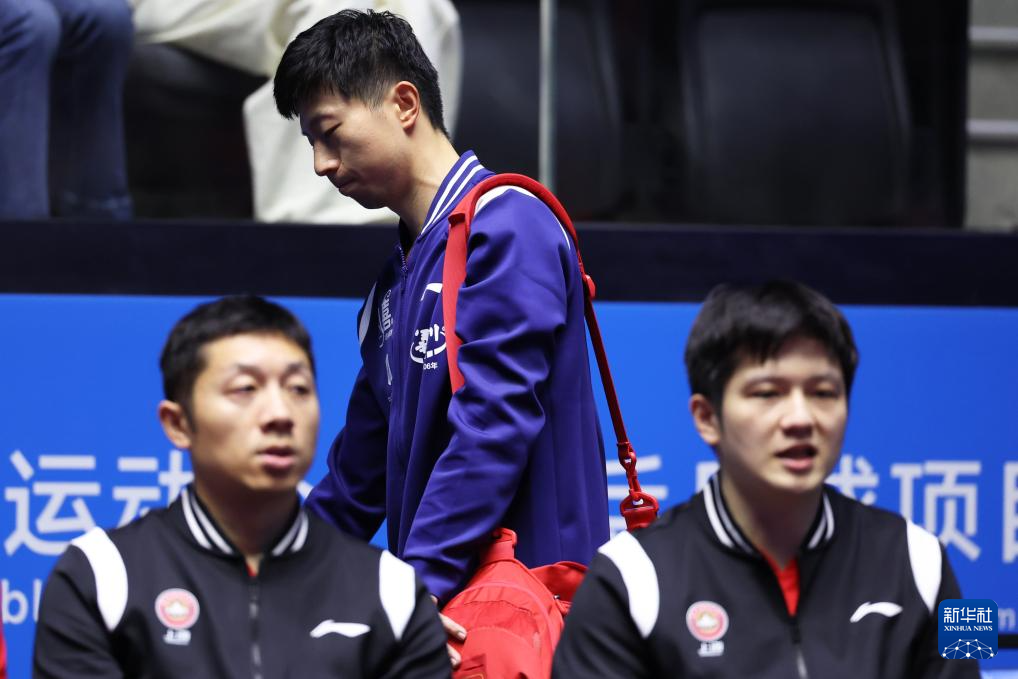 11月18日,北京隊選手馬龍(中)賽后離場。