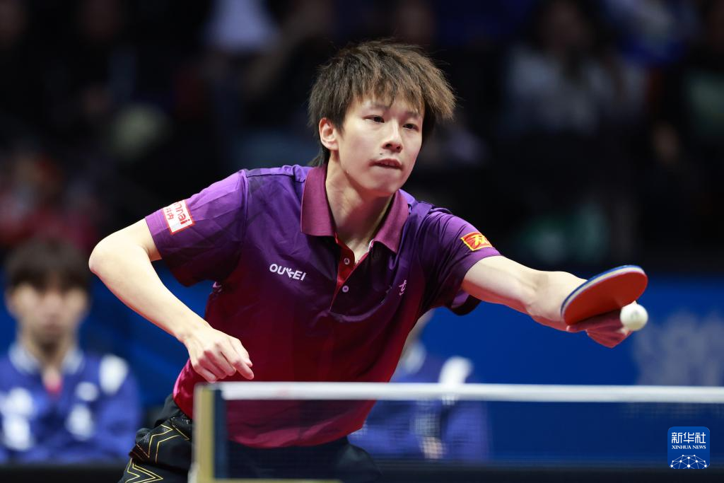 11月18日,北京隊選手王楚欽在男單比賽中回球。最終,他3比0戰勝廣東隊選手李藝杰。