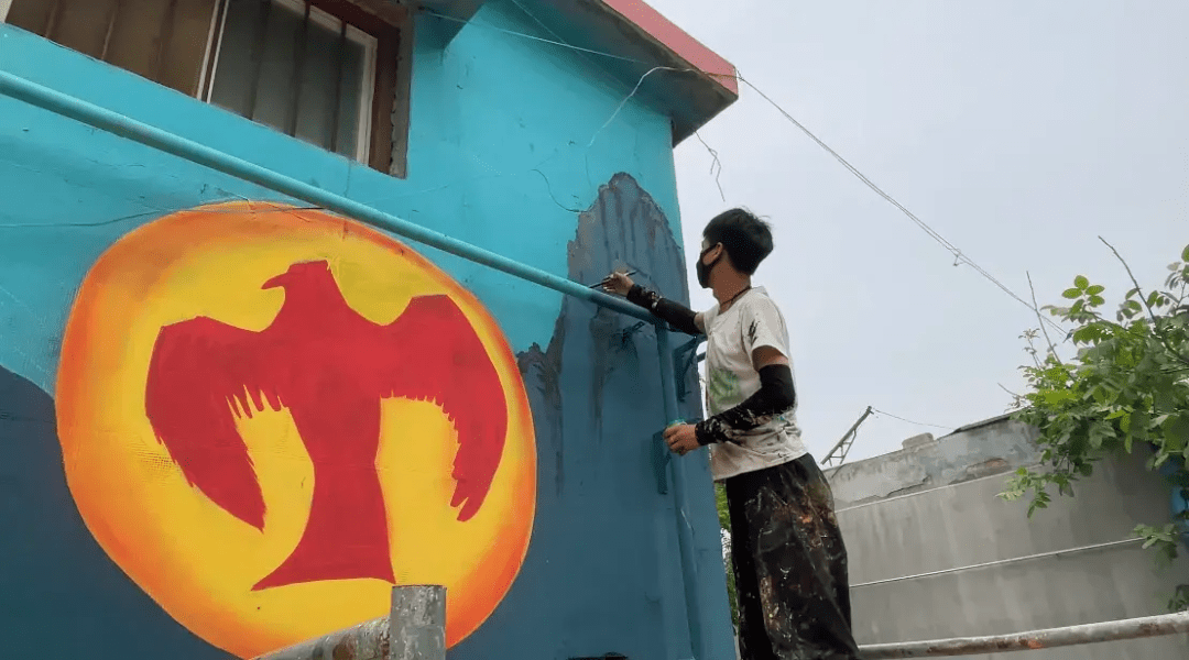 后來,畫了一段時間,小屯村解封了,兄弟們也各回各處。尚勤杰想留下來,繼續在小屯村的墻上畫畫,退了回北京的飛機票,辭掉了北京的工作。